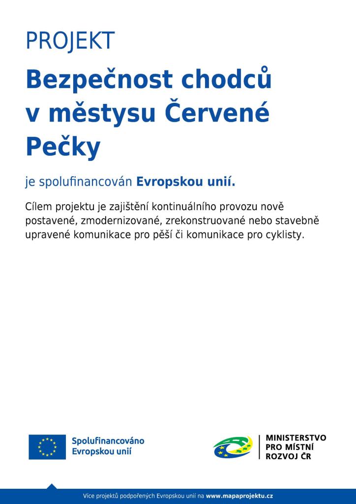 Projekt "Bezpečnost chodců v městysu Červené Pečky" je spolufinancován Evropskou unií.