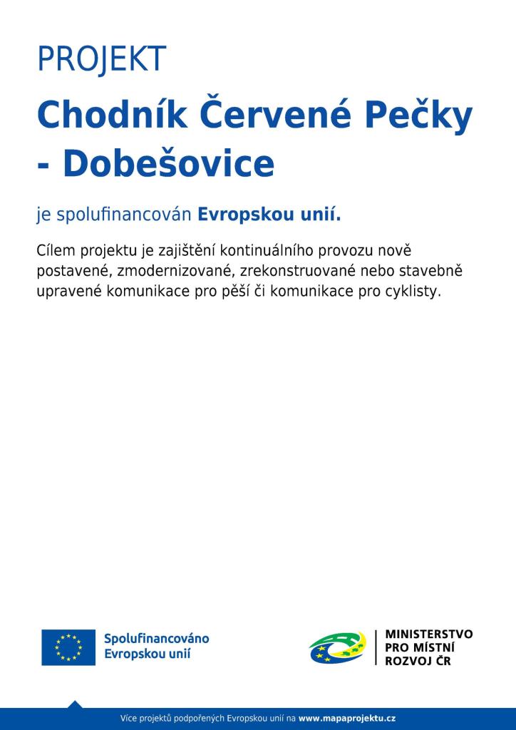 Projekt "Chodník Červené Pečky - Dobešovice" je spolufinancován Evropskou unií.